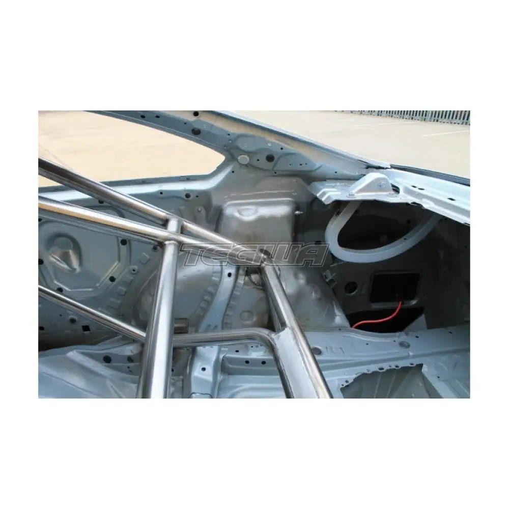 SAFETY DEVICES Roll cage number B054 is a T45 weld in cage for BMW M4 F82 Coupe 14+ (2 door, no sunroof). It features bent cross door bars, main hoop cross, dash bar, “V” brace in roof and backstays, rear sub frame mount and front triangulation. Finished cage is provided unpainted but oiled to prevent corrosion.