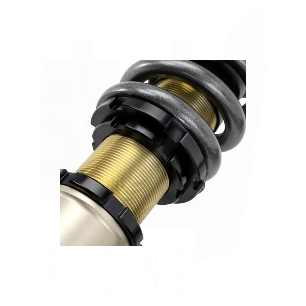 Pro-S II threaded shock bodies are machined from one-piece alloy steel forgings that allow for independent ride-height and spring pre-load adjustments. Pro-S II Coilovers also feature shortened shafts to maximize shock travel at even the lowest ride-heights.